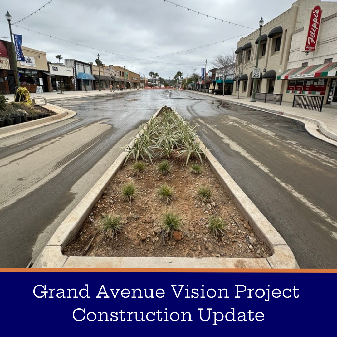Construction will take place Monday through Friday from 6:00 a.m. to 2:30 p.m. During construction, Grand Avenue will be closed to through traffic. However, pedestrian access will remain open to all businesses.